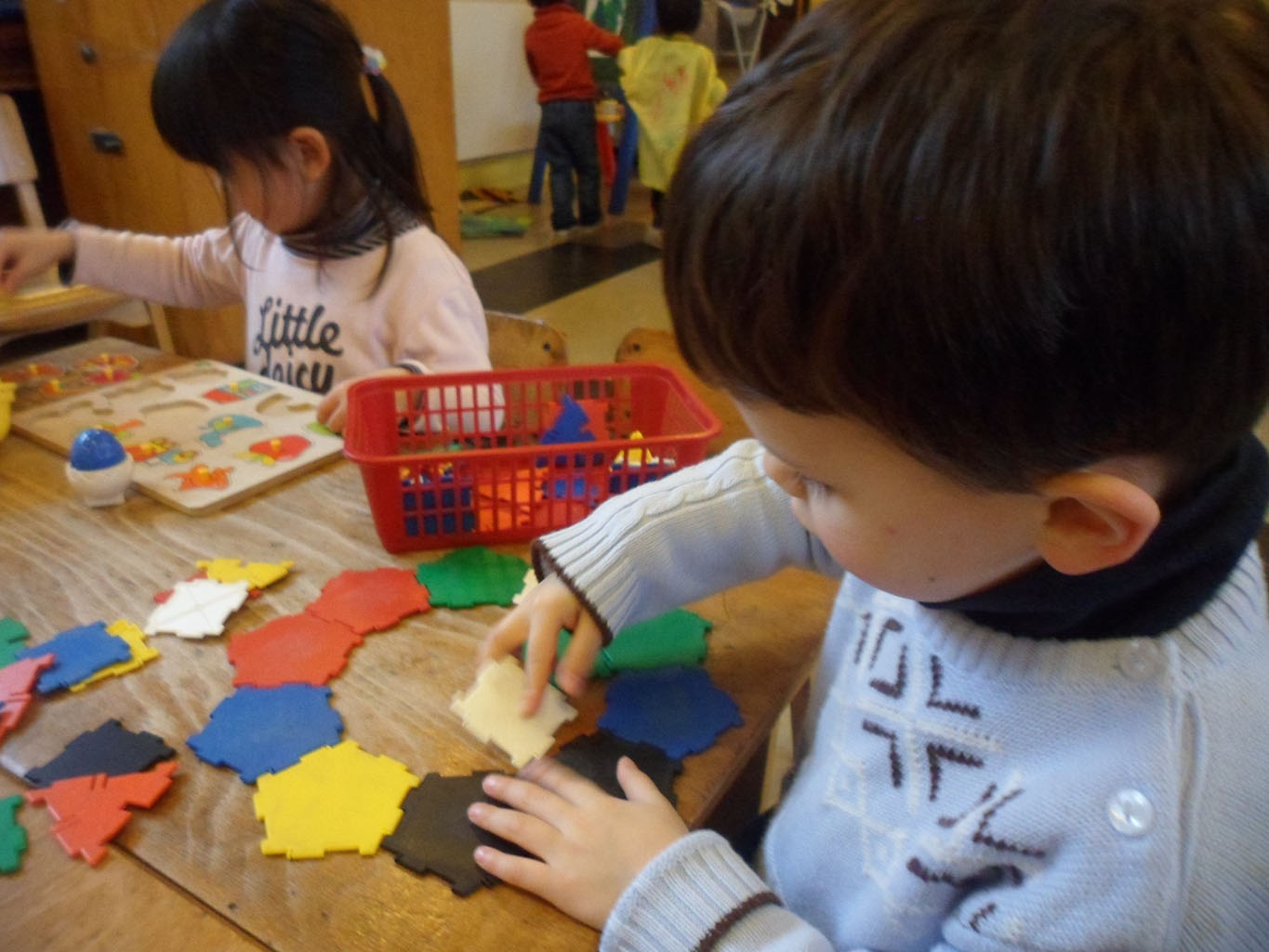 This room is a child-size world, with chairs, tables and shelves, in appropriate size. It is a unique feature of the ‘prepared environment’ that every object in the classroom has a specific place and purpose.